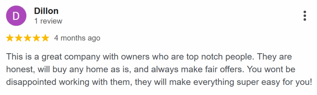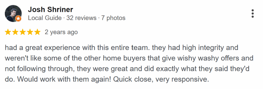 We care deeply about the satisfaction of the homeowners with whom we work. If we can’t give sellers the solution they want in the end, we’re not happy. See what others have written about us in the reviews listed below.